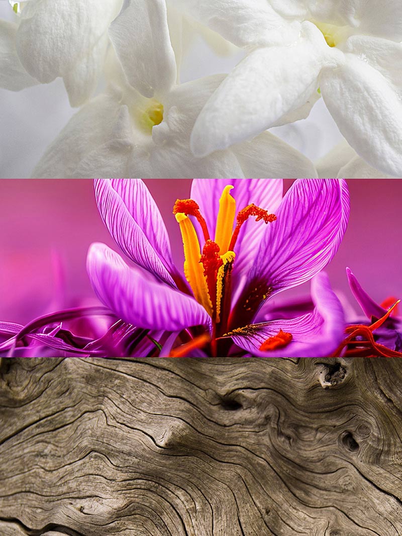 Blask szafranu łączy się z ciepłem świeżo ściętego cedru. To poetycka mieszanka mocnych nut.